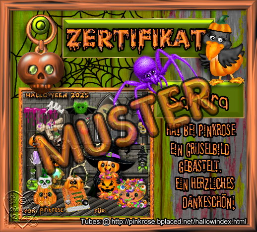 Die fertigen Gruselbilder werden hier ausgestellt und ihr bekommt ein Zertifikat mit Eurem Namen von mir, dass so aussieht: